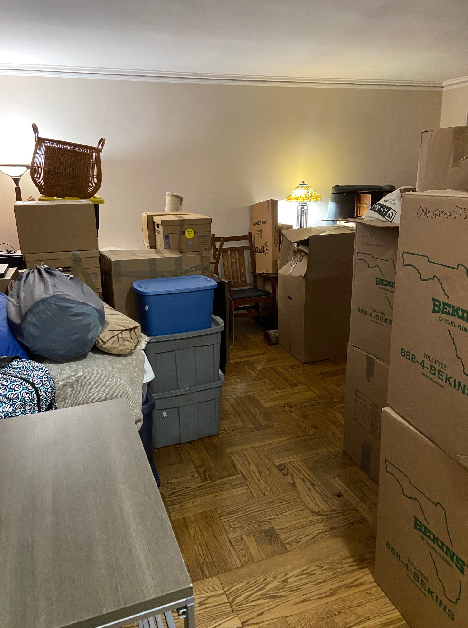 I’ve never been great at math. Here’s an equation that will lead to the photos you will see below. Minnesota House (2,600 sq. ft) = 420 boxes that moved to Florida. We ended up with boxes stacked to the ceiling in every room and it took three months to unpack. Next move, from Florida House (1,800 sq ft) = 250 boxes that moved to Florida apartment (but ended up requiring a “temporary” storage unit.) That one was easier, but we still ended up leaving boxes and furniture with friends until we could pick them up. So, priding ourselves on being reasonably capable of learning, you would think we would have everything figured out for the next move, Florida Apartment (1,400 sq ft) = 160 boxes to New York Apartment (750 sq. ft.) Nope.