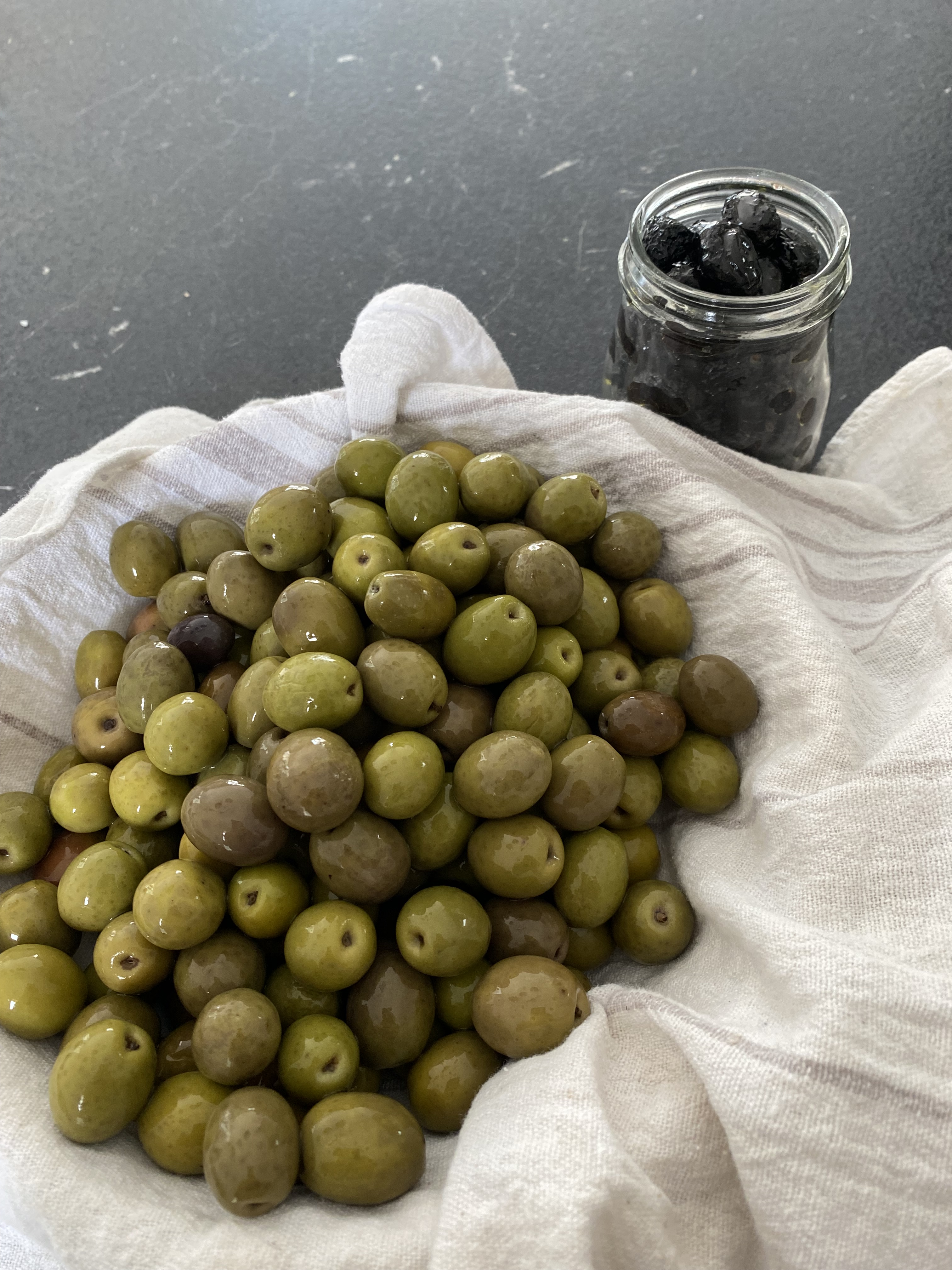 Cecile’s initial batch of cured and brined olives from last year made it into our aperitif rotation by mid March, to rave reviews from guests and neighbors. And me of course.
