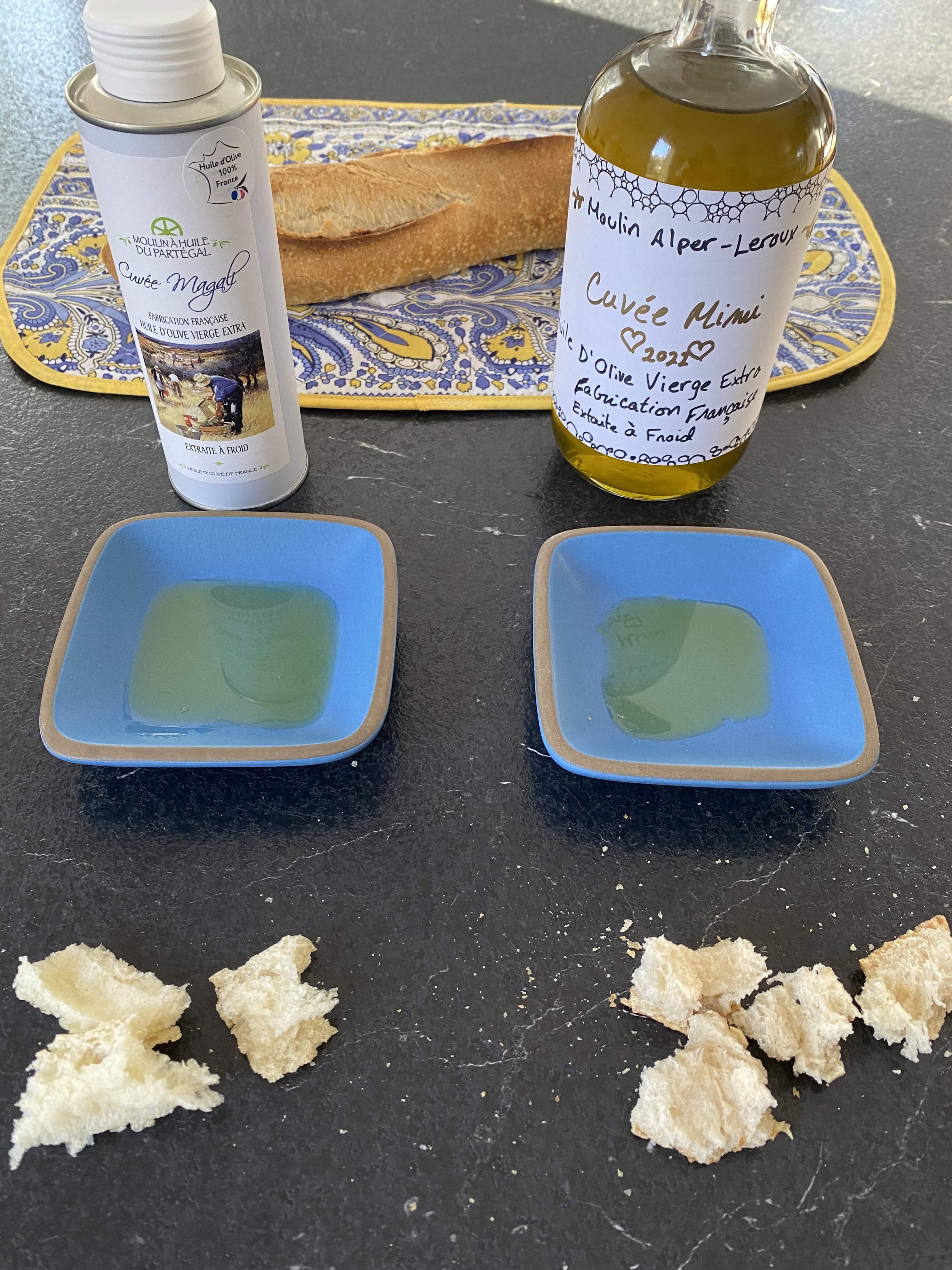 Eager with anticipation, we decanted out the first drops of L’Huile de Mimi (Mimi’s Oil, named after Cecile’s mom, whose ashes nourish the soil of Grandmother Olive since they were scattered there last year) and to my surprise at least, it was awesome. Best olive oil I had ever tasted. And yes, I am biased. But when we shared it with our French neighbors and our family, they agreed it was excellent. I think that is both true, and they are very polite.